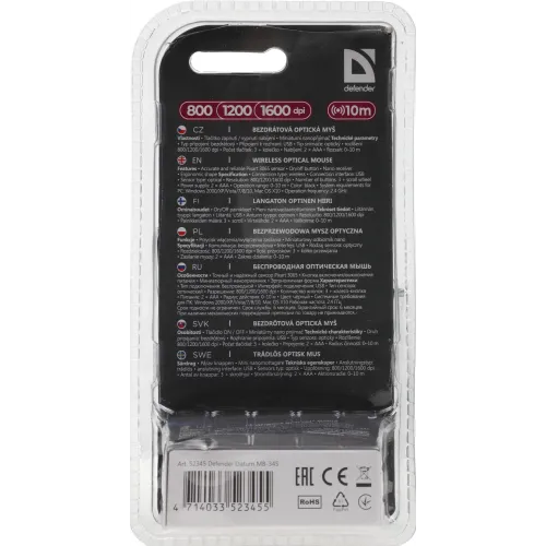 | Комплектация | упаковка, мышь, приемник, батарейка ААА 2шт |