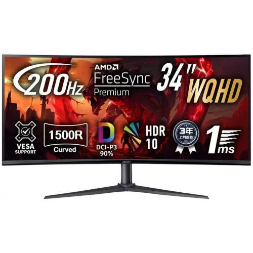 Монитор Acer 34" Nitro XZ340CURX2bmiipphx черный VA LED 1ms 21:9 HDMI M/M матовая HAS Piv 350cd 178гр/178гр 3440x1440 200Hz FreeSync Premium DP WQ 7.09кг
