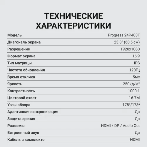 Монитор Digma 23.8" Progress 24P403F черный IPS LED 5ms 16:9 HDMI M/M матовая 250cd 178гр/178гр 1920x1080 120Hz DP FHD 3.6кг
