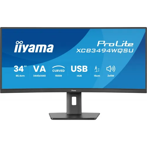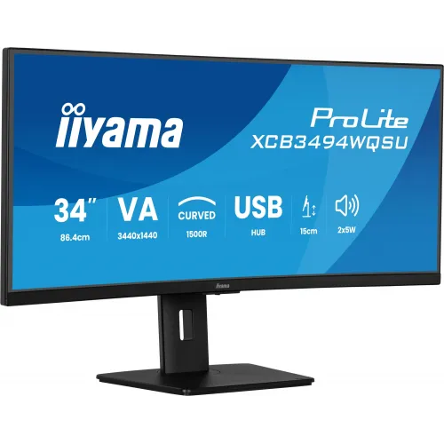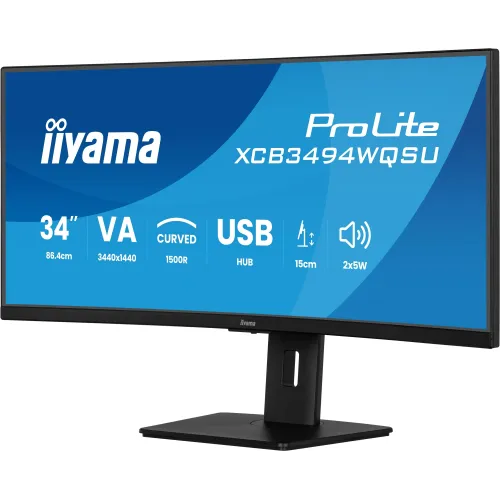 Монитор Iiyama 34" ProLite XCB3497WQSNPH-B1 черный VA LED 21:9 HDMI M/M Cam матовая HAS Piv 3000:1 350cd 178гр/178гр 3440x1440 120Hz FreeSync Premium DP UW USB 9.7кг