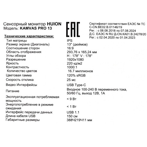 | PartNumber/Артикул Производителя | KAMVAS PRO 13 |