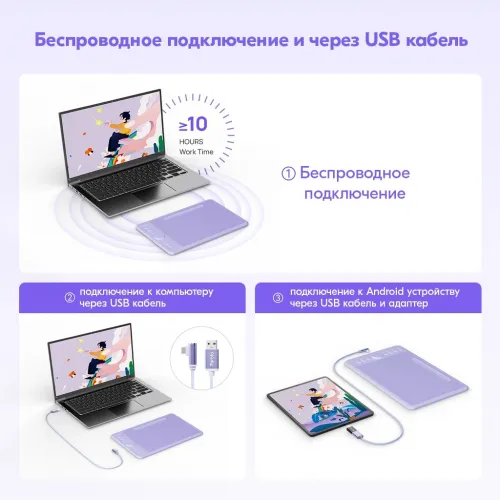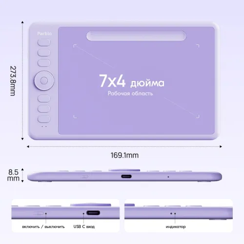 Графический планшет Parblo Intangbo SW USB Type-C фиолетовый