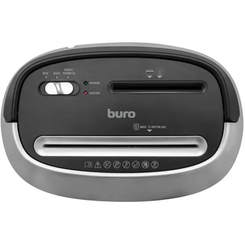Шредер Buro Office BU-S1201 черный/серебристый с автоподачей (секр.P-4) фрагменты 12лист. 25лтр. скрепки скобы пл.карты CD