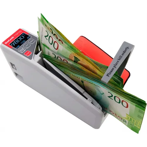 | Особенности | Счётчик банкнот работает от сети и от батареек АА; OLED дисплей без ограничений по разрядности чисел; Счёт с накоплением итога; Счёт одного номинала с вычислением итоговой суммы; Детекция по УФ и на просвет; Счёт банкнот любого состояния; Варьируемый размер фасовки; Низкий уровень шума. |
