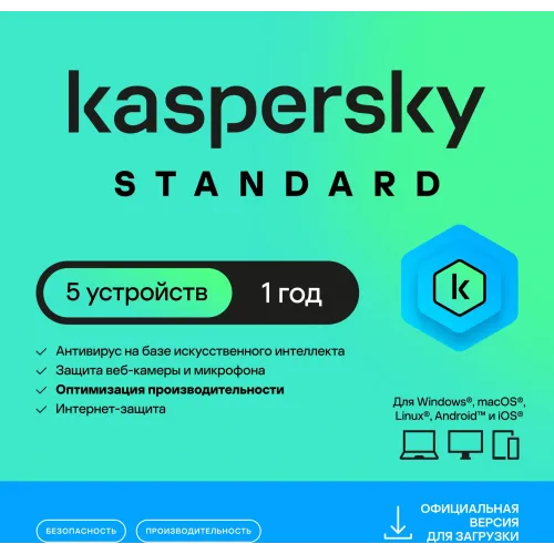 Ключ активации Kaspersky Standard Russian Edition 5-Device 1Y Base Download Pack (KL1041RDEFS)