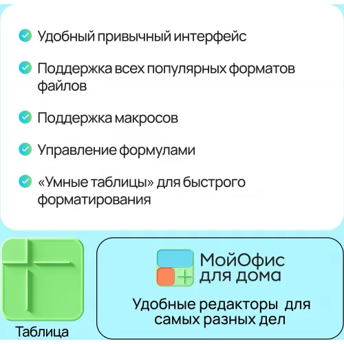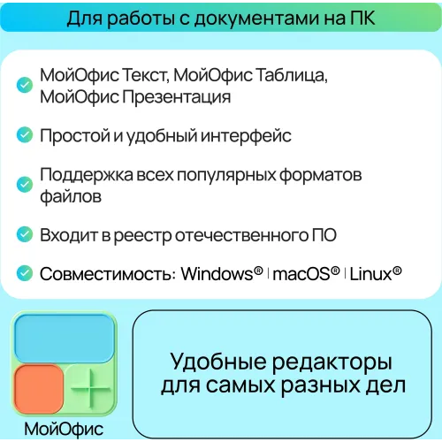 | Описание | Полный набор офисных приложений для работы с текстовыми документами, электронными таблицами и презентациями на ПК. |