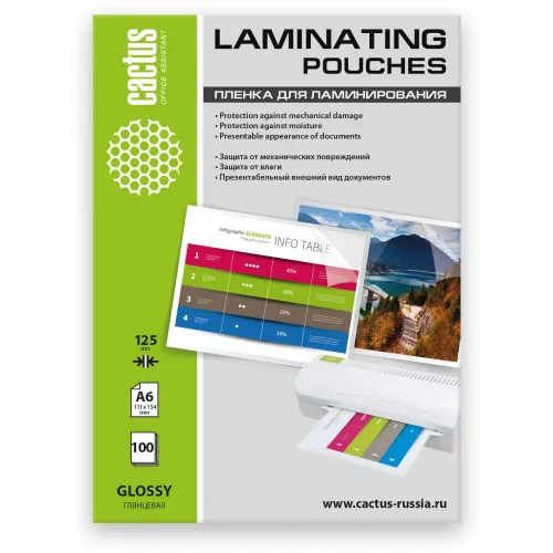 Пленка для ламинирования Cactus 125мкм A6 (100шт) глянцевая 111x154мм CS-LPGА6125100