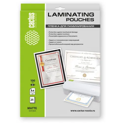 Пленка для ламинирования Cactus 100мкм A4 (25шт) матовая 216x303мм CS-LPMА410025