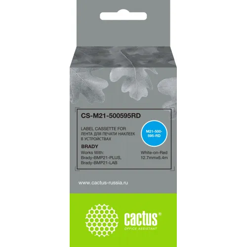 Картридж ленточный Cactus CS-M21-500595RD белый на красном 12.7x6.4 для Brady BMP21-PLUS, BMP21-LAB