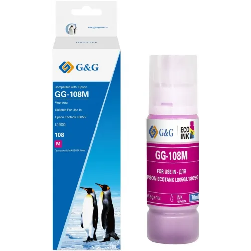 Чернила G&G GG-108M C13T09C34A пурпурный70мл для Epson Ecotank L8050/L18050