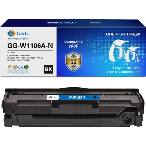 Картридж лазерный G&G GG-W1106A-N W1106A черный (1000стр.) для HP Laser 107a/107r/107w/135a MFP/135r MFP/135w MFP/137fnw MFP