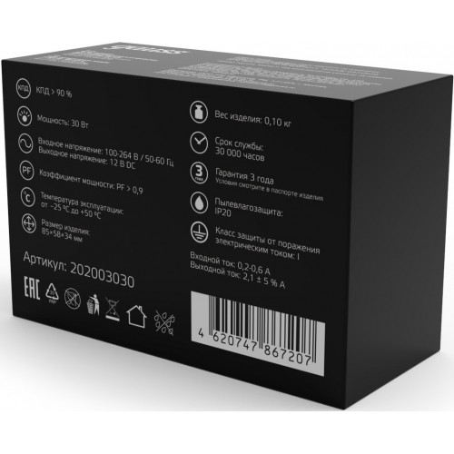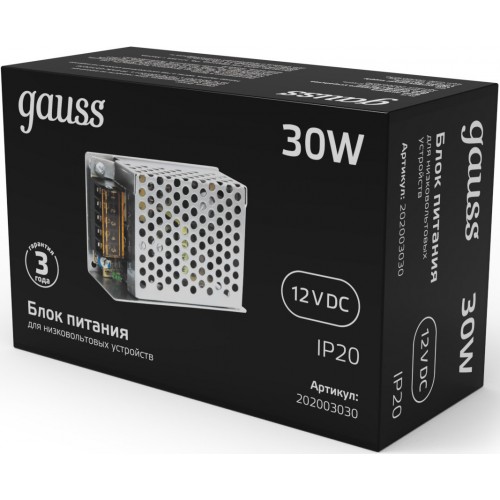 Блок питания Gauss 202003030 встраив. для лен.светод. черный