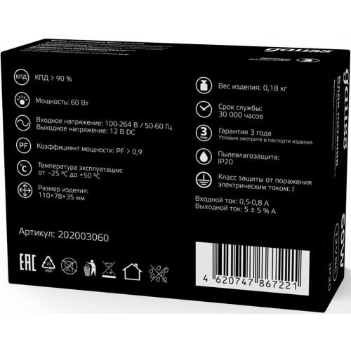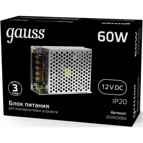 Блок питания Gauss 202003060 встраив. для лен.светод. черный