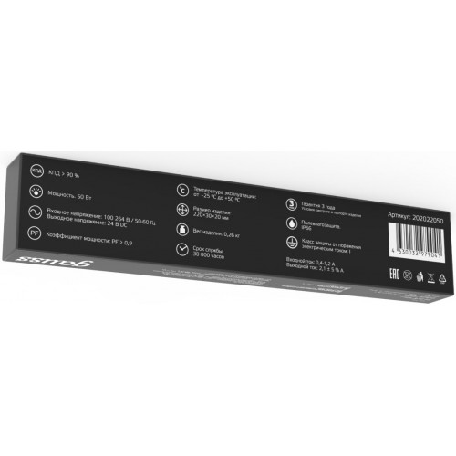 Блок питания Gauss 202022050 пониж. для лен.светод. черный