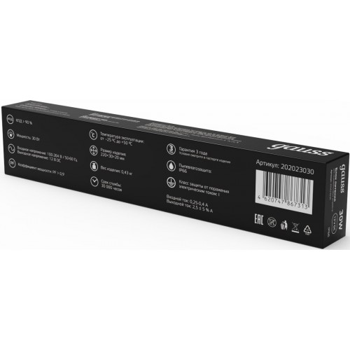 Блок питания Gauss 202023030 пониж. для лен.светод. черный/серый