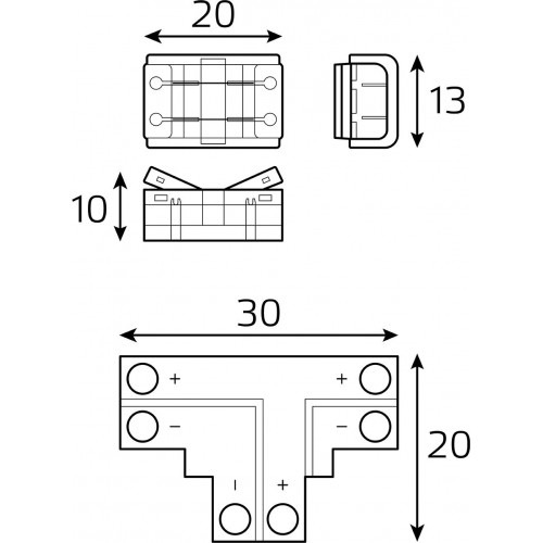 | Описание | Т-образный коннектор, 3 клипсы, 8-10 мм, IP20 BT400 для соединения сегментов монохромной ленты шириной 8-10 мм. без пайки. |