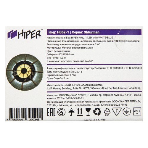 Светильник Hiper Shturman H062-1 14Вт 4000K цв.св.:белый нейтральный белый/синий