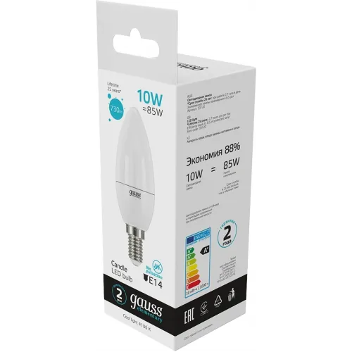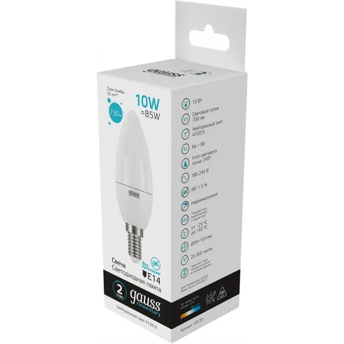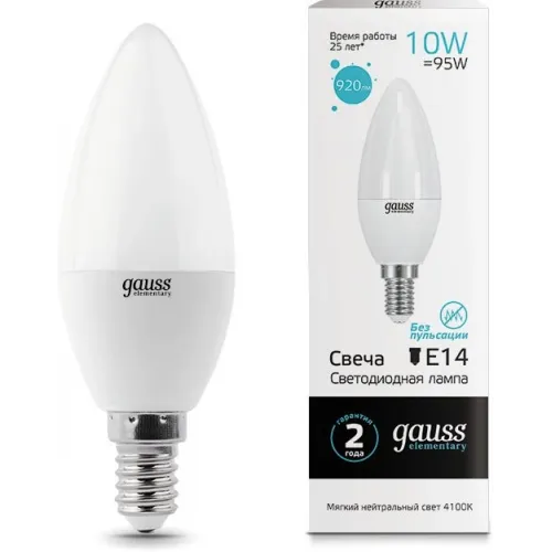 Лампа светодиодная Gauss Elementary 10Вт цок.:E14 свеча 220B св.свеч.бел.нейт. C37 (упак.:1шт) (33120)