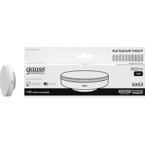 Лампа светодиодная Gauss Elementary 12Вт цок.:GX53 (упак.:10шт) (84822X)