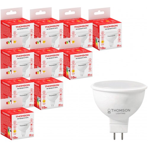 Лампа светодиодная Thomson TH-B2049 10Вт цок.:GU5.3 рефлек. 220B св.свеч.бел.теп. MR16 (упак.:10шт) (TH-B2049-10)