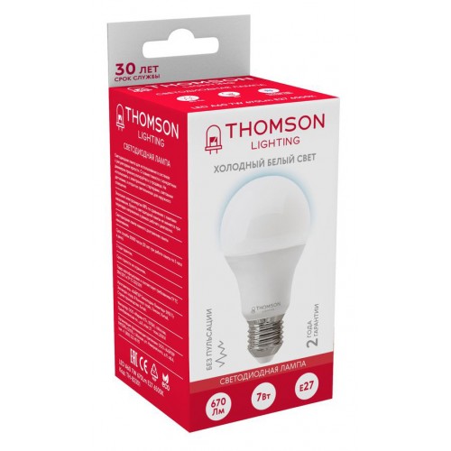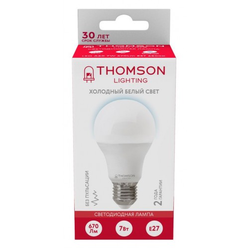 Лампа светодиодная Thomson TH-B2301 7Вт цок.:E27 груша 220B св.свеч.бел.хол. A (упак.:1шт)