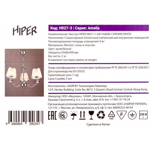 Люстра Hiper Amelia H027-3 потолоч. хром/белый