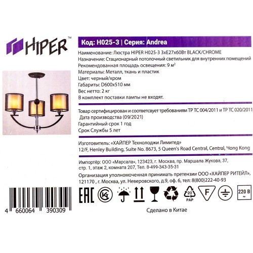 Люстра Hiper Andrea H025-3 потолоч. золотистый/хром