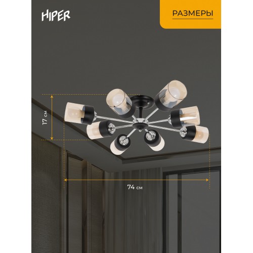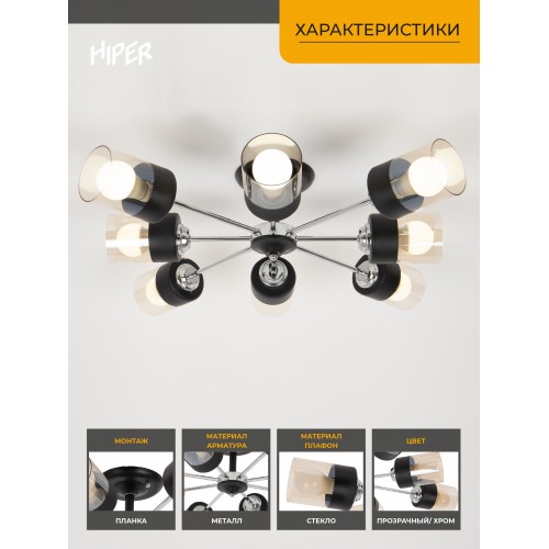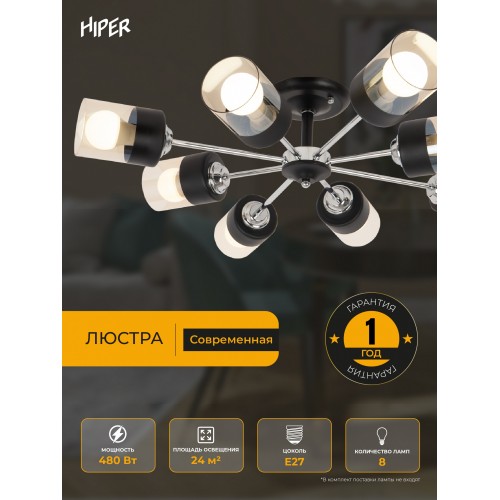 Люстра Hiper Orlando H111-8 потолоч. 3000K черный/хром