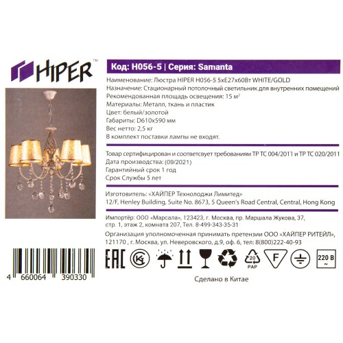 Люстра Hiper Samanta H056-5 подвес. белый/золотистый