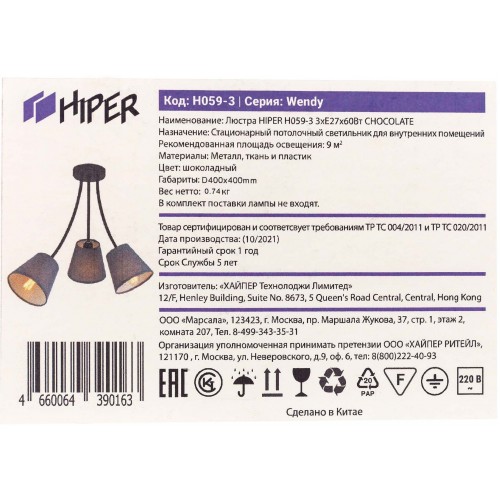 Люстра Hiper Wendy H059-3 потолоч. шоколадный