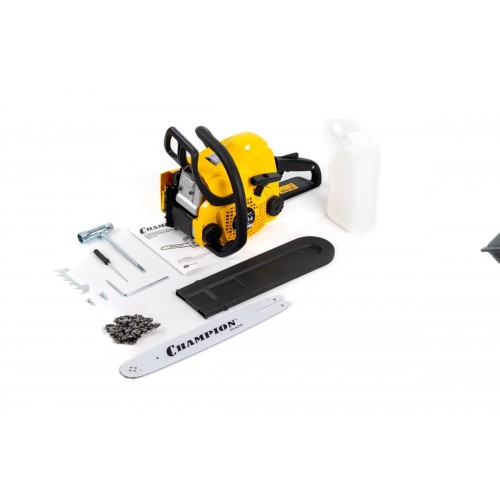 Бензопила CHAMPION 232-14 предназначена для заготовки дров, распиливания заготовок из древесины, раскряжевки и валки деревьев, спиливания ветвей. Инструмент оборудован уловителем цепи, рычагом тормоза, цепью с низкой отдачей и блокиратором курка газа, что повышает безопасность использования. Функция легкого запуска обеспечивает быстрый и легкий старт данной модели. Высокая производительность достигается за счет мощного бензинового двигателя, поддерживающим скорость цепи до 13000 об/мин