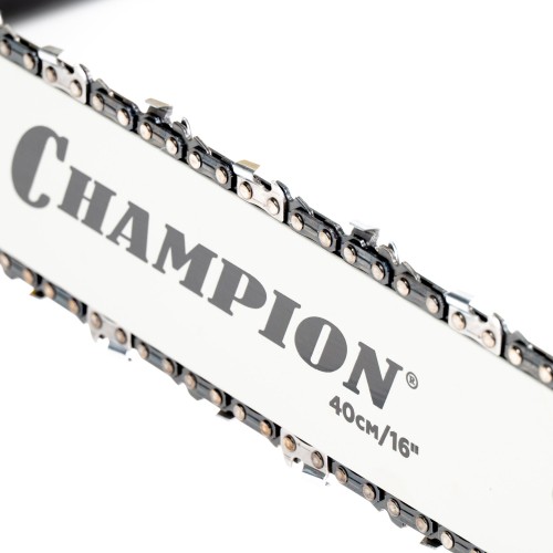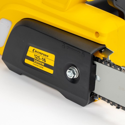Электрическая цепная пила Champion 125-16 — это мощная и легкая электрическая цепная пила с двигателем мощностью 2,5 кВт и длиной шины 16 дюймов (40 см). Она оснащена цепью с шагом 3/8 дюйма и шириной паза 1,3 мм, содержит 56 звеньев. Вес с шиной и цепью около 5 кг, что обеспечивает удобство в работе. Пила оснащена инерционным тормозом для безопасности и работает на напряжении 230 В, 50 Гц.