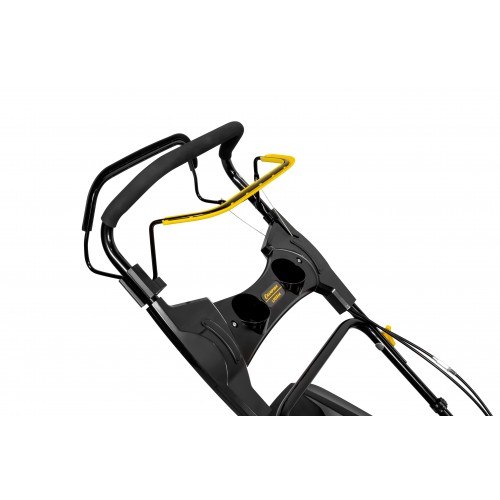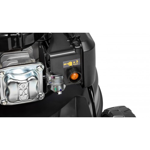 Наличие встроенного штуцера для подключения воды позволяет легко и быстро очистить корпус (деку) газонокосилки от остатков травы. Для этого достаточно подключить шланг с водой к штуцеру, завести двигатель, подать воду и дать поработать газонокосилке несколько минут.