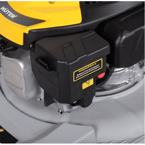 Обеспечивает работу косилки одноцилиндровый бензиновый двигатель на 4 л.с., который позволяет косить без привязки к розетке. Агрегат не самоходный, то есть толкать его по участку нужно вручную. Ножи вращаются на холостом ходу со скоростью от 2800 до 3200 об/мин. Топливный бак вмещает 1 л бензина, чего хватает на длительную работу.