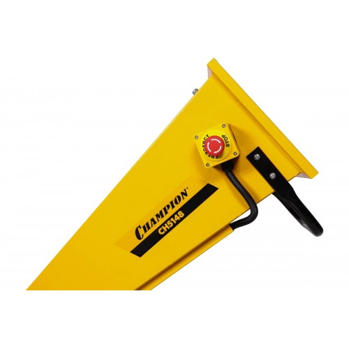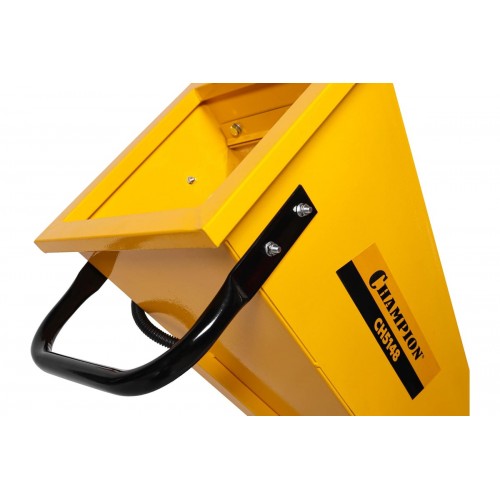 Бензиновый измельчитель Champion CH5148 измельчает ветки и деревца диаметром до 40 мм при помощи барабана с двумя плоскими ножами (принцип электрического рубанка). Агрегат оснащён колёсами и легко транспортируется. На жёлобе установлен аварийный выключатель зажигания для экстренных случаев.