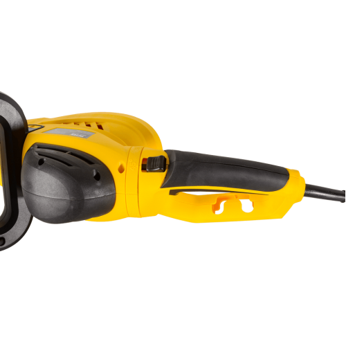 Задняя рукоятка поворачивается на различные углы (±90°, ±45°), что позволяет оператору выбирать наиболее удобное положение для каждой конкретной ситуации. Чтобы обезопасить оператора, инструмент оснащен специальным защитным кожухом.
