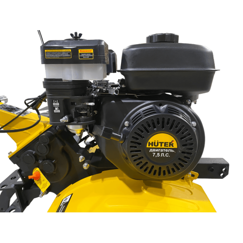 Мотоблок оснащен 4-тактным одноцилиндровым бензиновым двигателем мощностью 7.5 л.с., что обеспечивает высокую производительность и устойчивую работу даже на тяжелых и целинных грунтах. Двигатель защищен воздушным фильтром с масляной ванной, что особенно важно для работы в условиях высокой запыленности и значительно увеличивает ресурс силового агрегата. Предусмотрен объемный топливный бак на 3.6 л. Расход топлива составляет при этом 375 г/кВт·ч.