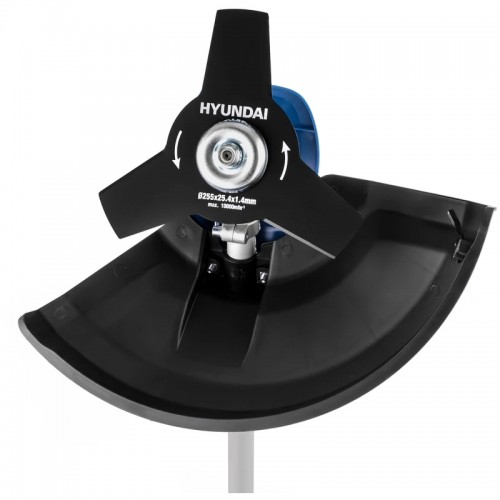 Трехлопастной стальной нож отлично справляется с покосом сухостоя и высокой растительности. Для регулярного ухода за участком подходит леска. Регулируемый по длине наплечный ремень облегчает переноску аккумуляторного триммера для травы Hyundai. Клавиша включения и регулятор оборотов двигателя удобно расположены под правой рукой. Леска подается при однократном легком ударе головкой о землю. В момент касания срабатывает механизм, который высвобождает часть шнура из катушки.
