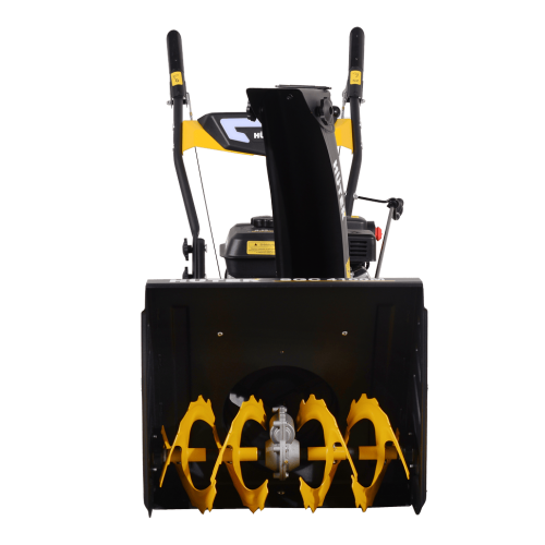 Агрегат оснащен мощным четырехтактным бензиновым двигателем с запасом силы в 7 л.с., обеспечивающим уверенную уборку плотного и глубокого снежного покрова. Снегоуборщик комплектуется ручным стартером, простым и надёжным в эксплуатации.