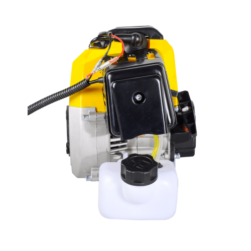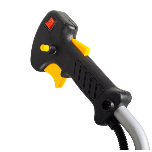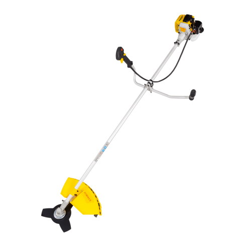 Система управления вынесена на рукоятки - что упрощает работу оператора. Для удобства запуска механизма и регулировки скорости вращения, правая рукоятка оснащена рычагом зажигания. Вместимость бака - 0,7 л, что способствует непрерывной работе оборудования длительное время. Жёсткий вал, расположенный внутри неразборной штанги, существенно снижает уровень вибрации, содействуя увеличению срока службы бензинового триммера. Хромированная поршневая группа обеспечивает его надёжную, бесперебойную работу, воздушное охлаждение защищает механизм от перегрева.