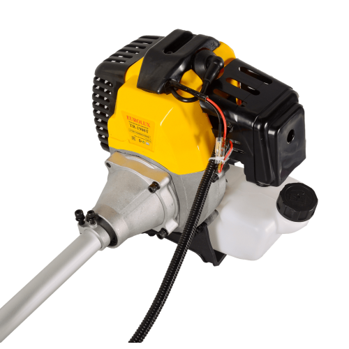 Eurolux TR-1900T отличается небольшими размерами и легким весом всего 6,3 кг. Им удобно обрабатывать ограниченные пространства около деревьев, кустов, ограждений и между посадками. Специальная антивибрационная конструкция минимизирует усталость оператора при длительном использовании. Комплект дополняется наплечным ремешком, облегчающим эксплуатацию. Безопасность обеспечивается защитным экраном, препятствующим попаданию обломков растений и мелких предметов. На нем также установлен механизм регулировки длины нити, защищающий агрегат от повреждений при чрезмерном выходе нитевого материала из барабана.