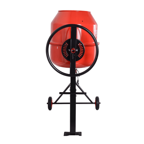 Барабан вращается со скоростью 32 об/мин при стандартном режиме работы. Модель оснащена механизмом ручного опрокидывания для выгрузки готового раствора. Конструкция соответствует степени защиты IP44D (защита от брызг воды и твердых частиц размером более 1 мм). Механизм оснащен защитным кожухом.