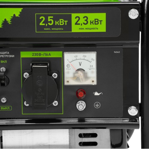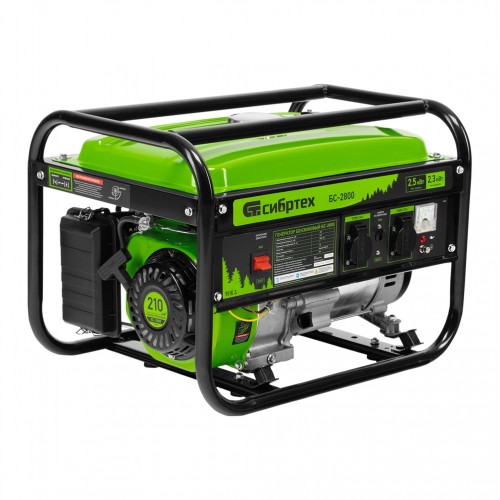 Бензиновый генератор Сибртех БС-2800 94543 на 230 В, максимальной мощностью 2,5 кВт, с 4-тактным двигателем и баком объемом 15 л, подходит для использования на даче, в гараже, мастерской или на стройке. Небольшой вес 37,6 кг позволяет брать генератор с собой на выездные работы или на природу. Мощности 2,5 кВт достаточно для одновременного питания 2 ламп накаливания, холодильника, СВЧ-печи и телевизора. 2 розетки упрощают одновременное подключение нескольких приборов.