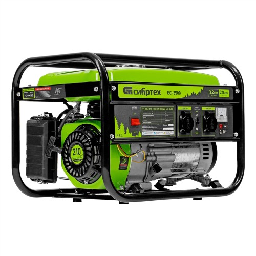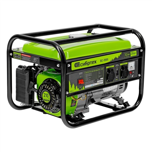 Генератор бензиновый БС-3500, 3.2 кВт, 230В, четырехтактный, 15 л, ручной стартер Сибртех
