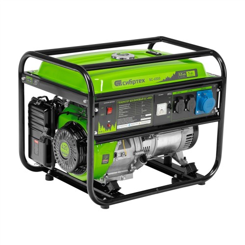 Бензиновый генератор Сибртех БС-6500 94546 на 230 В, с 4-тактным двигателем, баком на 25 л и ручным стартером, выдает 5,5 кВт и подходит для создания целой электросети в загородном доме, магазине, мастерской или на строительной площадке. К нему можно одновременно подключить 5 ламп накаливания, холодильник, телевизор. Для подключения приборов предусмотрено 3 розетки. Одна из них силовая на 32А, что позволяет запитать мощное оборудование, например, электрическую плиту.