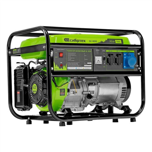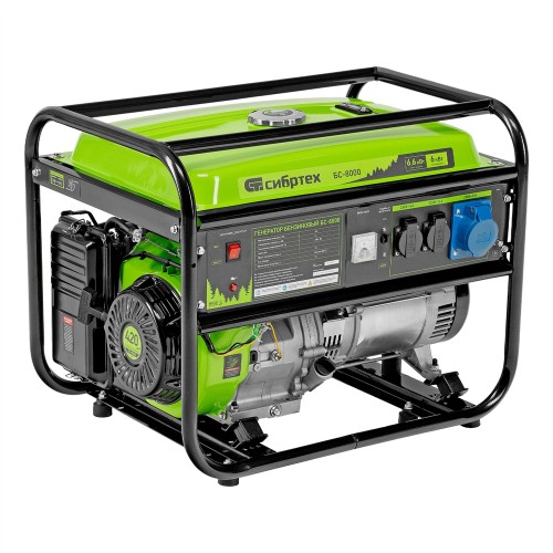 Генератор бензиновый БС-8000, 6,6 кВт, 230В, четырехтактный, 25 л, ручной стартер Сибртех