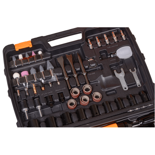 Все инструменты в наборе оснащены быстросъемными штуцерами, что значительно упрощает их подключение и эксплуатацию.