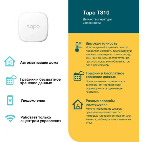 | Требования | Работает только с центром управления — для работы требуется центр управления Tapo H100. |
