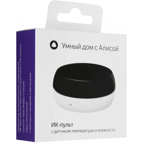 | Описание | Умный ИК-пульт Яндекс с встроенным датчиком температуры и влажности, работает с Алисой |