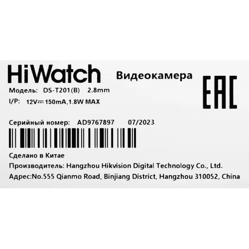 | PartNumber/Артикул Производителя | DS-T201(B) (2.8 MM) |